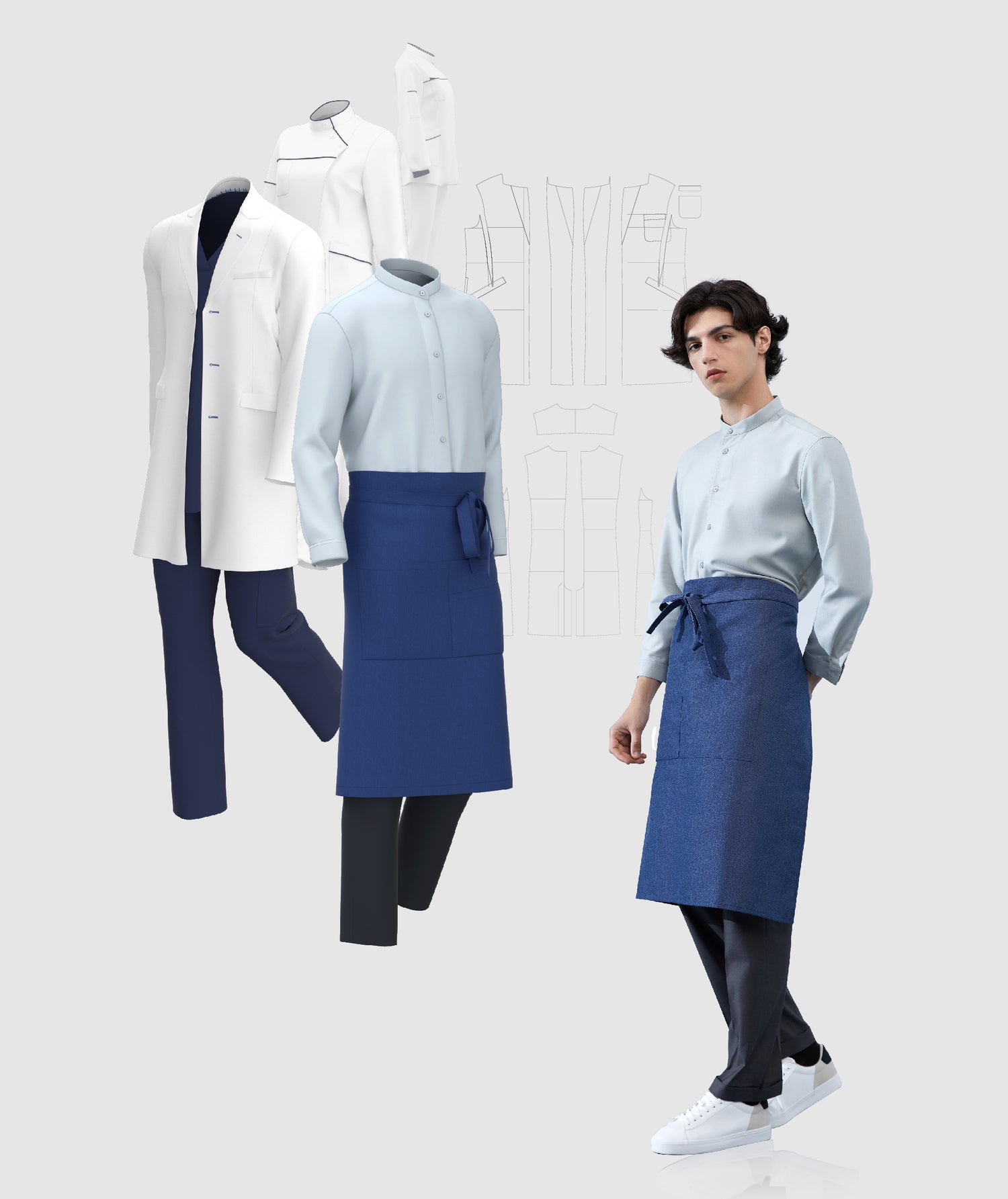 With a wide range of styles and fabrics, our professional design team responds quickly to customization needs. Using 3D digital clothing simulation technology, we enable one-stop online collaboration — from design and revision to production, exhibition, and sales.