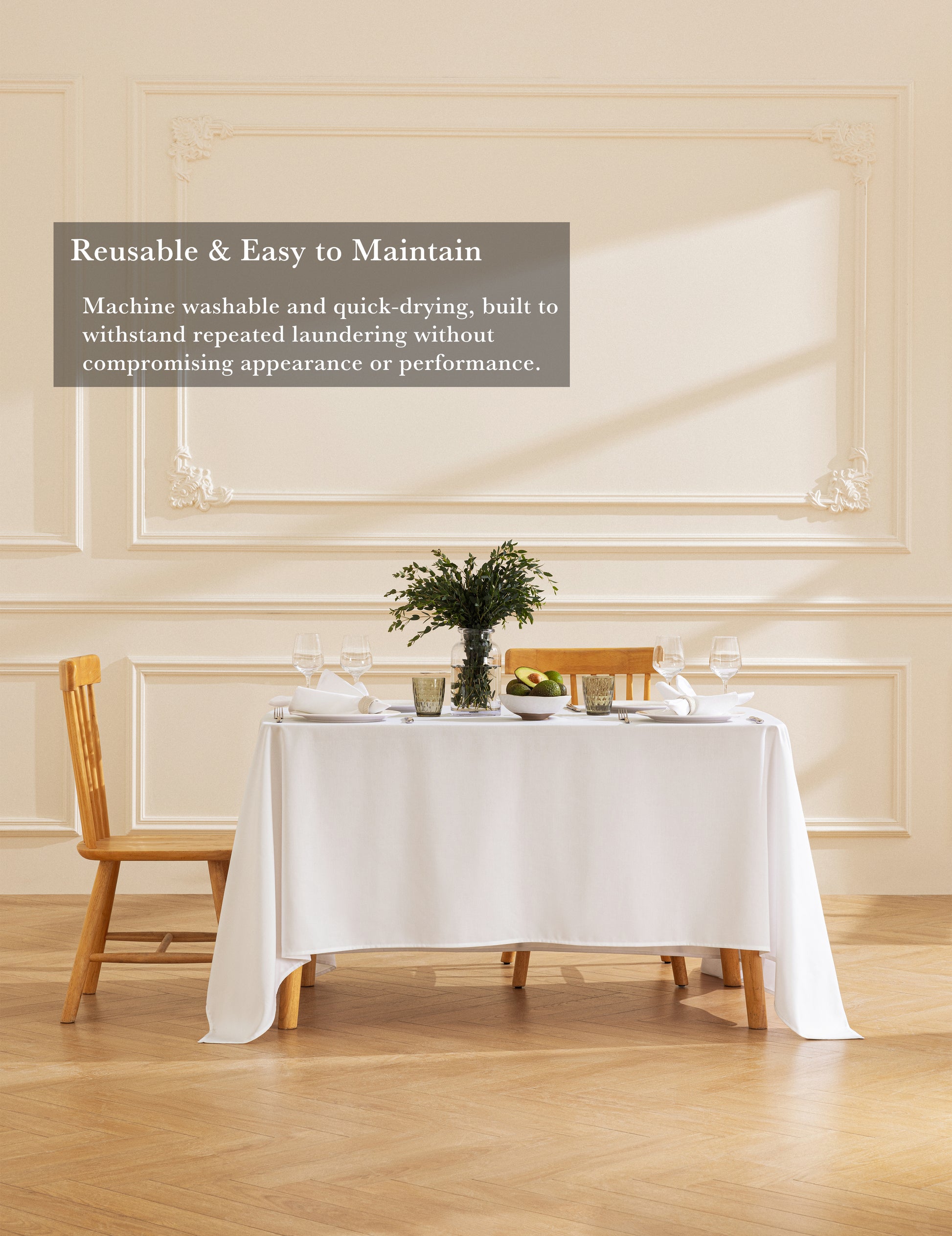 Machine washable and quick-drying, built to withstand repeated laundering while maintaining crisp presentation and long-lasting value.