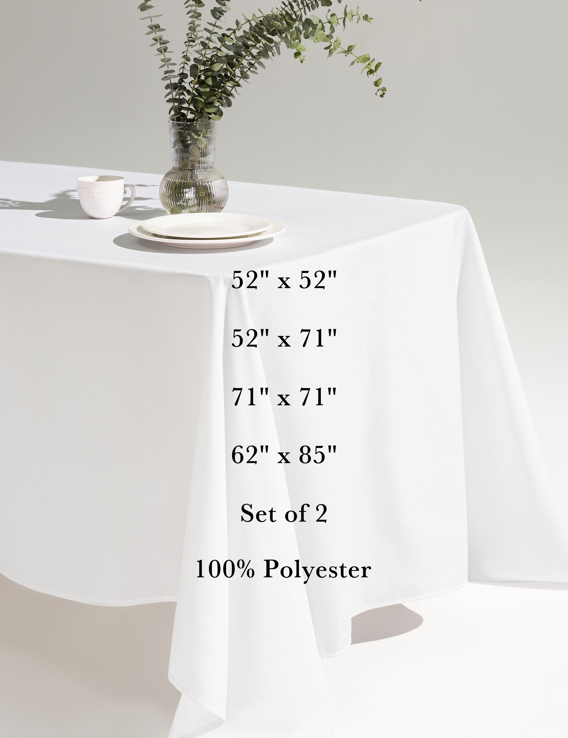 Sheenfon 100% Polyester Tablecloth, Square, White, Set of 2