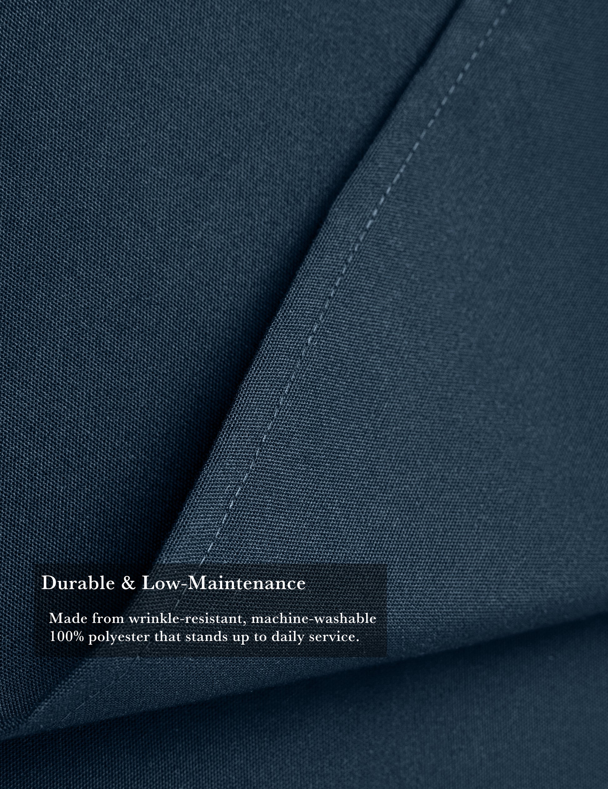100% polyester, wrinkle-resistant, machine washable.