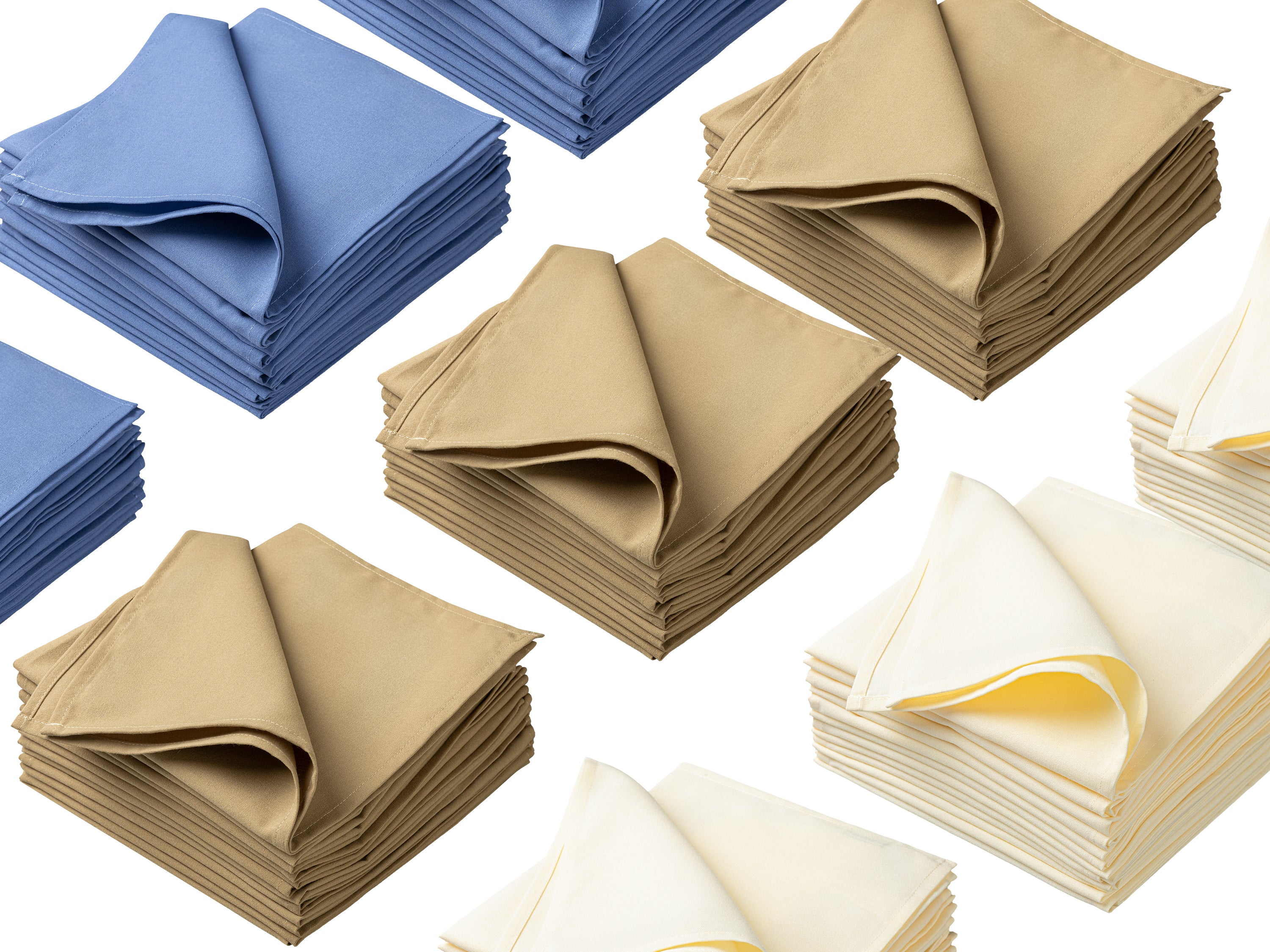 Available in Light Beige, Sandlewood, and Light Blue, they introduce subtle color variation while maintaining a professional, polished look. The fabric is easy to wash, quick to dry, and engineered to resist wrinkles and fading—making these napkins a dependable choice for reliable, everyday use.