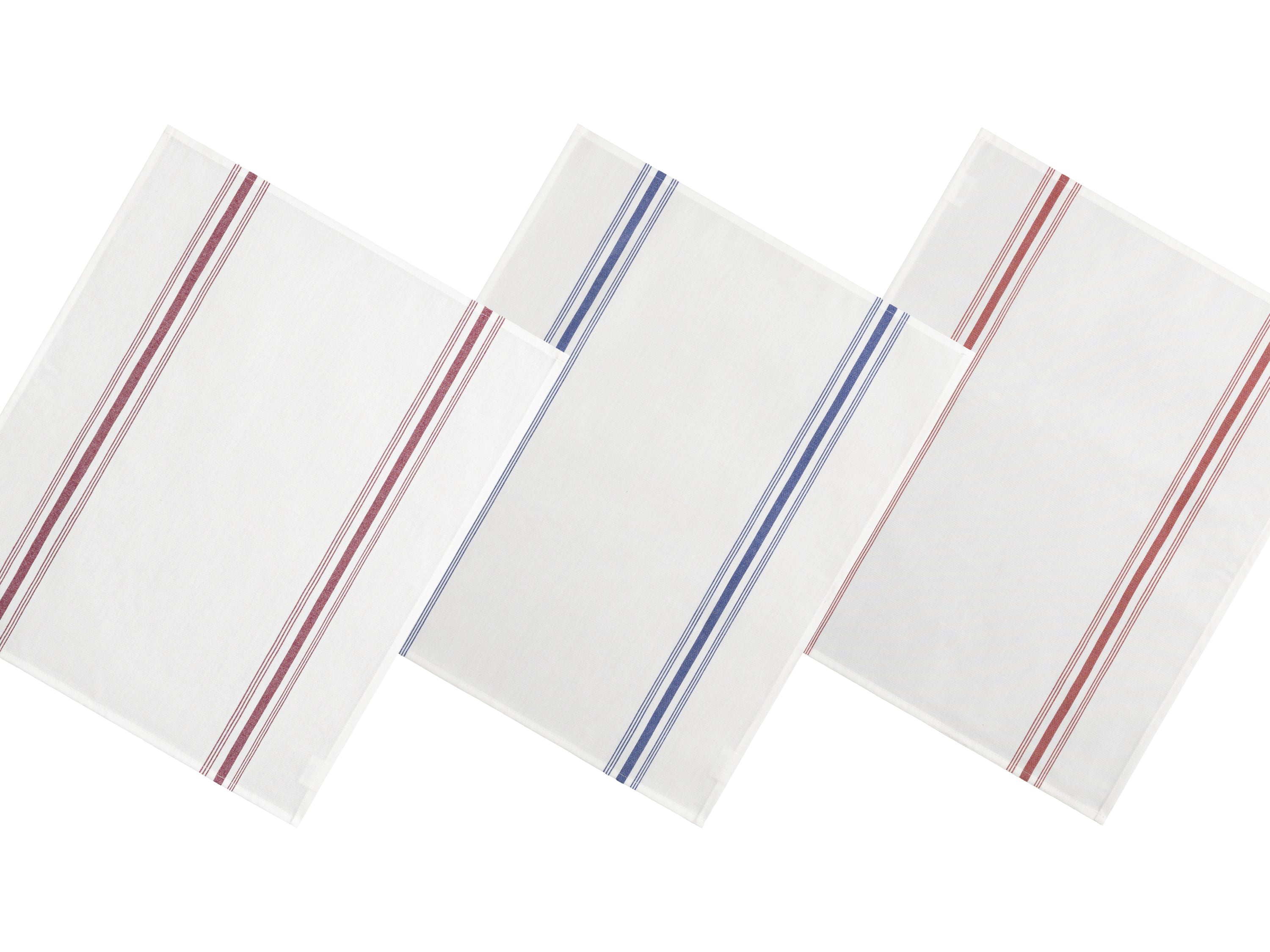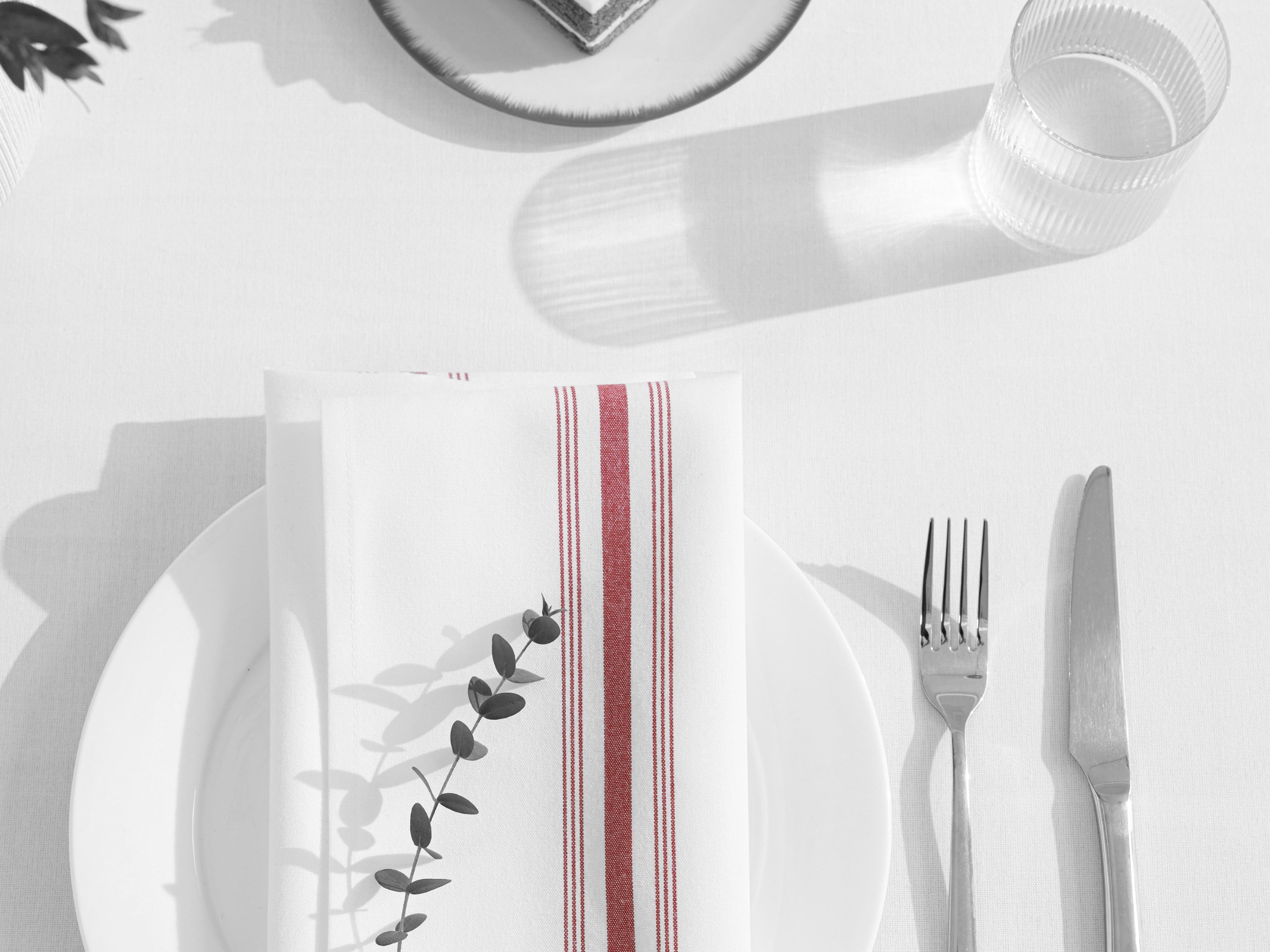 Woven from 100% polyester, these napkins feature a classic dual-stripe border that adds subtle elegance to any table.