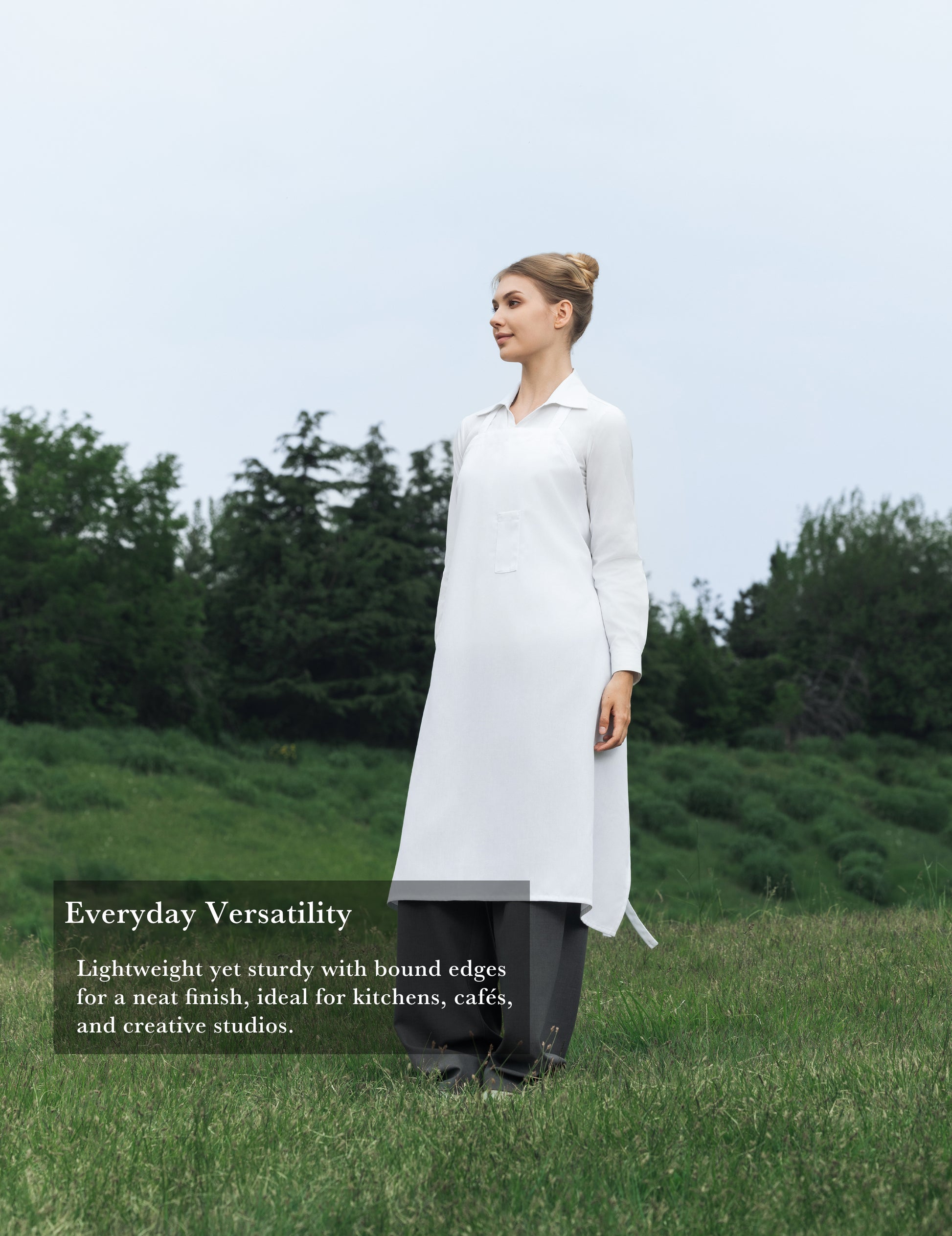 Crafted from durable materials and finished with clean bound edges, this apron blends everyday practicality with long-wearing structure—perfect for kitchens, cafés, or creative studios.