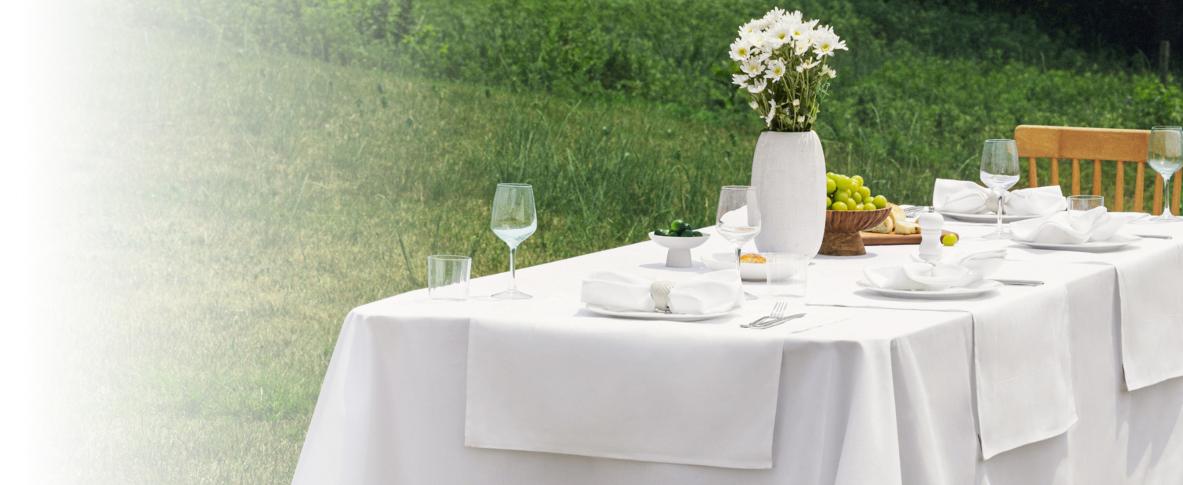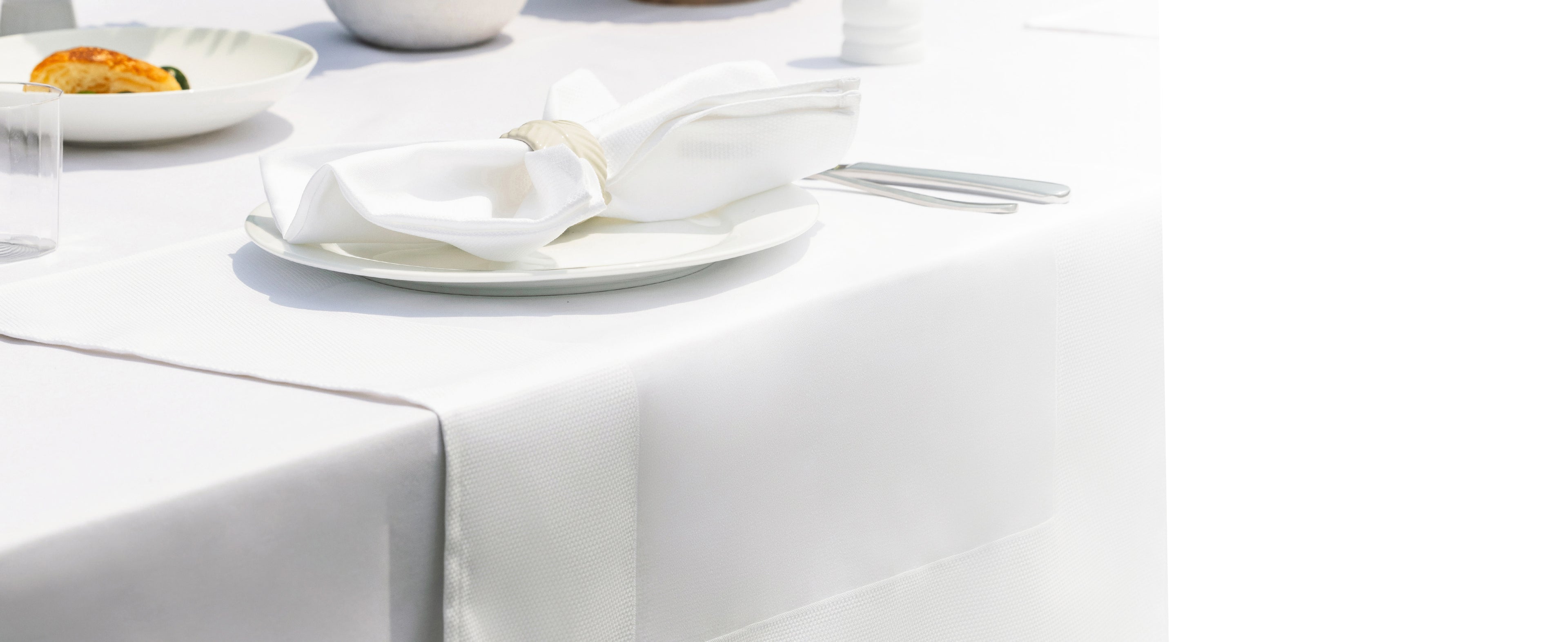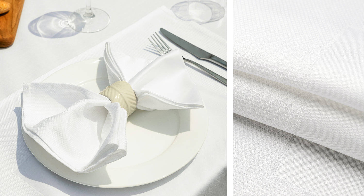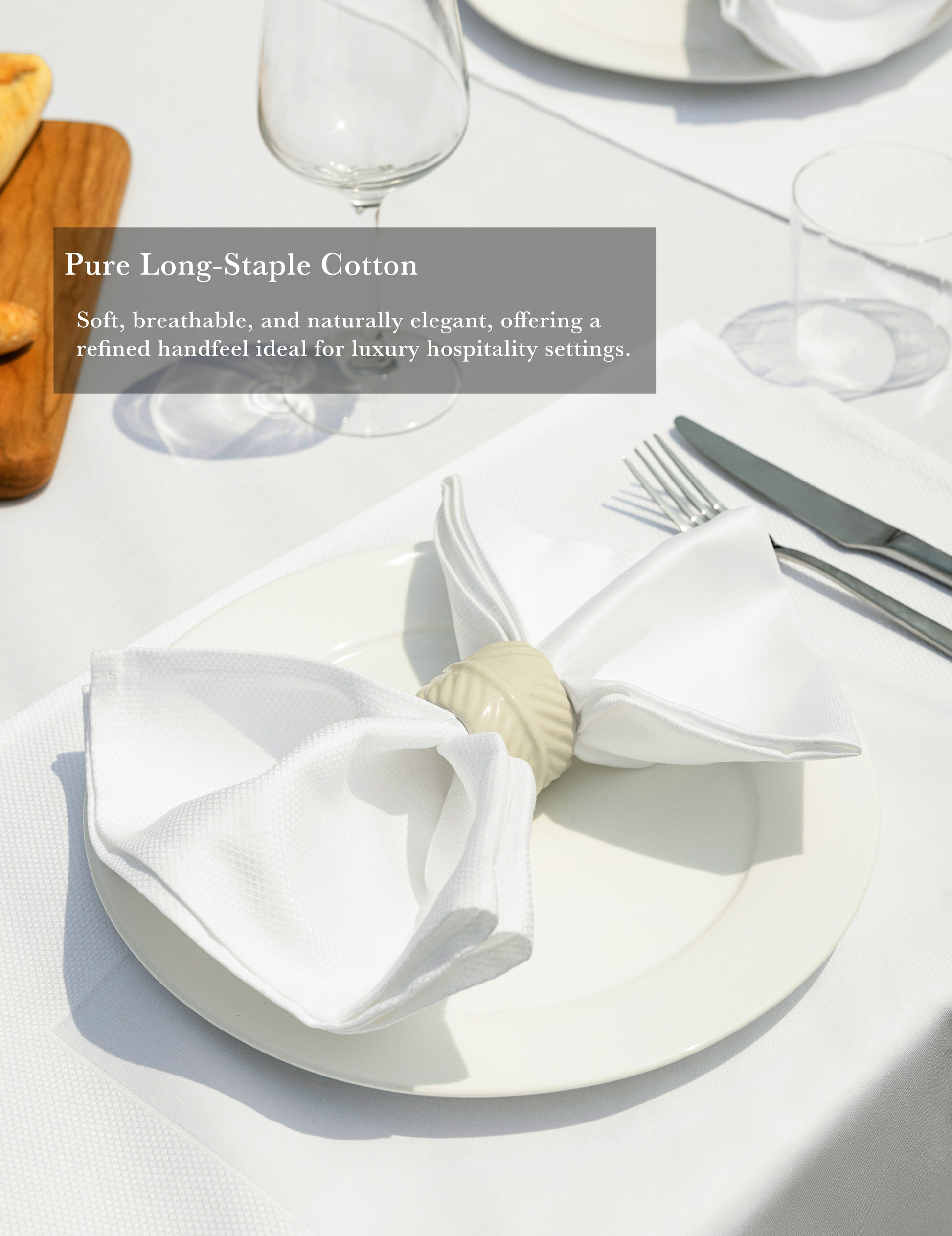 A crisp, versatile white that complements any dinnerware, perfect for hotels, restaurants, weddings, and catered events.