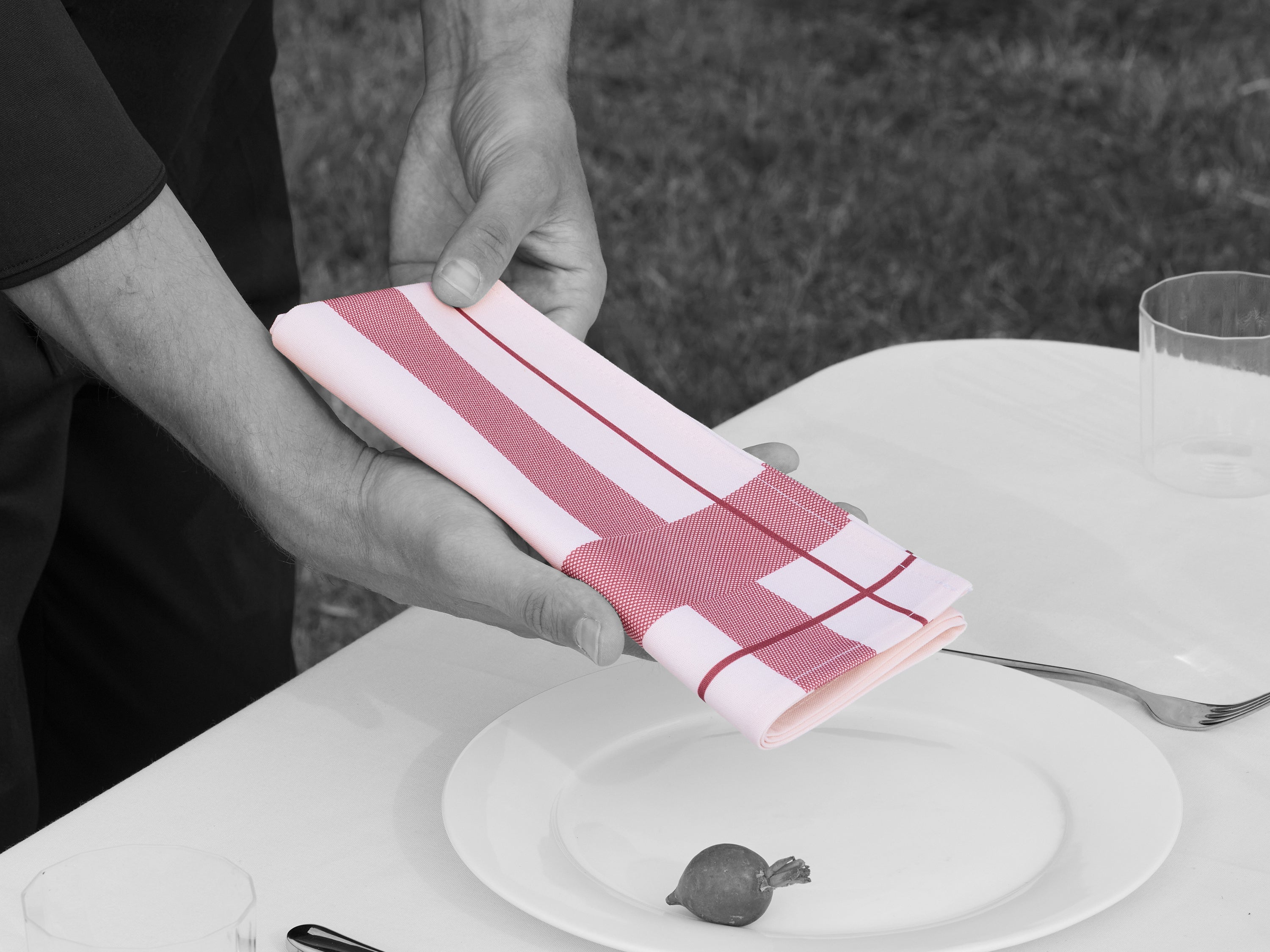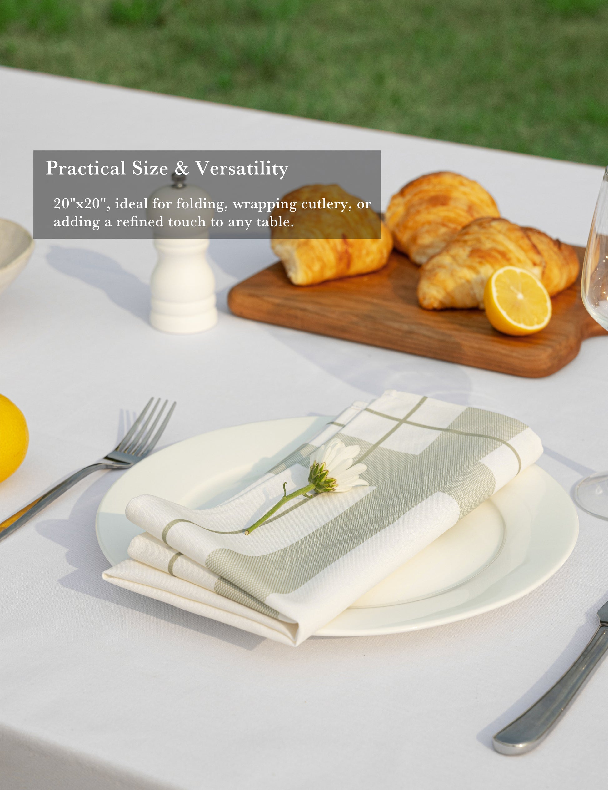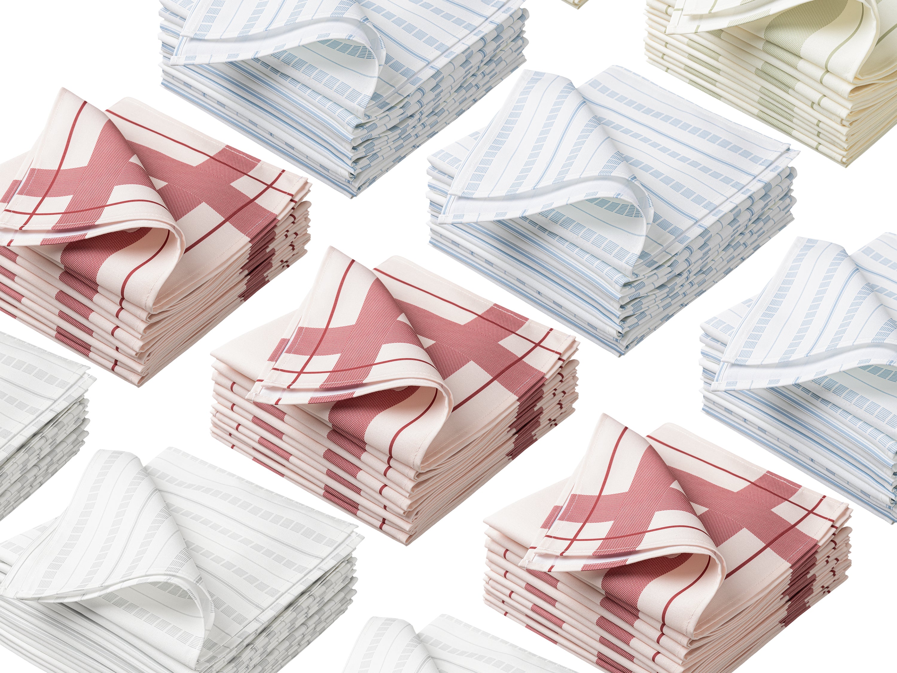 Available in check or striped grid prints, these napkins bring a fresh and inviting look to casual dining tables, cafés, or outdoor events.